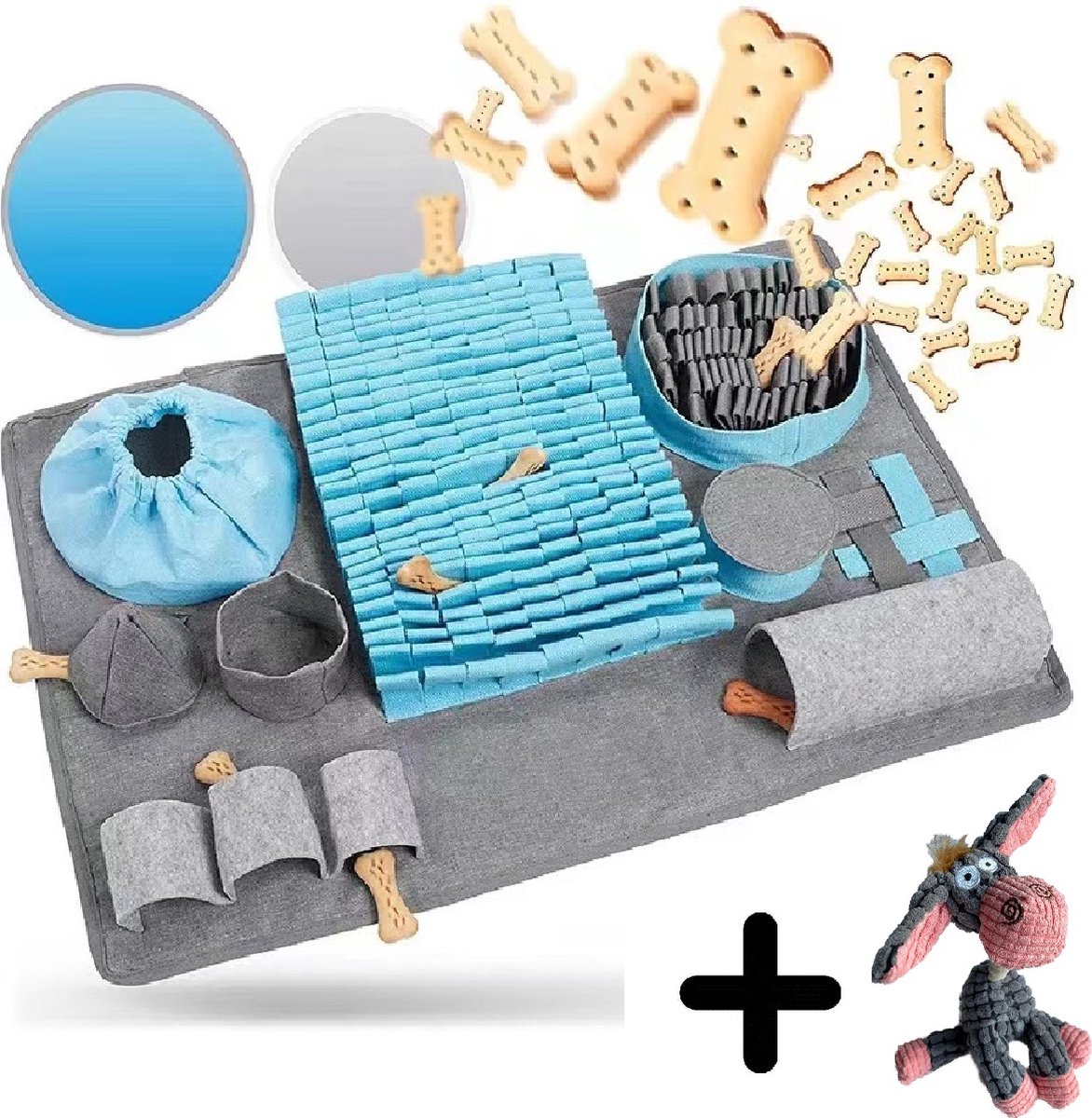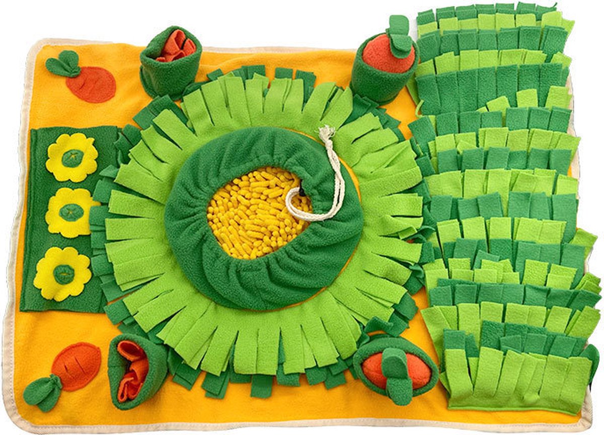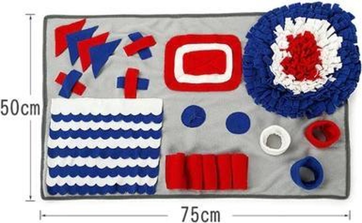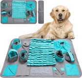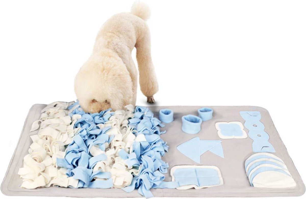 Een snuffelmat is een leuke en leerzame manier om je hond bezig te houden. Door snoepjes of brokjes in de mat te verstoppen, stimuleer je het natuurlijke snuffelgedrag van je hond. Het is ideaal voor mentale uitdaging en helpt verveling tegen te gaan. Daarnaast kan het helpen bij honden die te snel eten, omdat ze langzamer moeten zoeken naar hun voedsel. Een snuffelmat is geschikt voor honden van alle leeftijden en rassen.