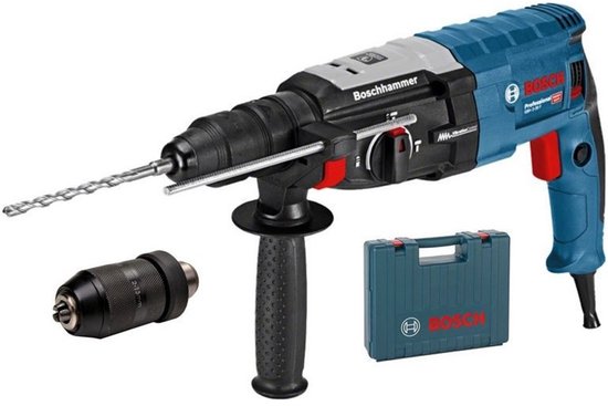 Met een snoer van 4 meter heb je meer bewegingsvrijheid dan bij veel andere netstroommodellen. De machine wordt geleverd in koffer met handgreep en diepteaanslag, wat past bij het professionele karakter. Dit is geen instapmodel, maar een serieuze boorhamer voor zware en regelmatige klussen.