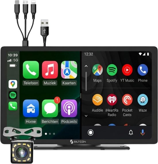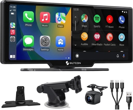 Het Siltcon 9” CarPlay scherm is een uitstekende oplossing voor wie zijn auto wil upgraden met slimme functionaliteit zonder gedoe met inbouw. Het scherm ondersteunt zowel draadloze Apple CarPlay als Android Auto, waardoor je eenvoudig toegang hebt tot je favoriete apps, navigatie en muziek. Dankzij het heldere HD-display van 9 inch zie je alles duidelijk, ook bij fel zonlicht. Handig is ook de Mirror Link functie waarmee je het volledige scherm van je telefoon kunt spiegelen.