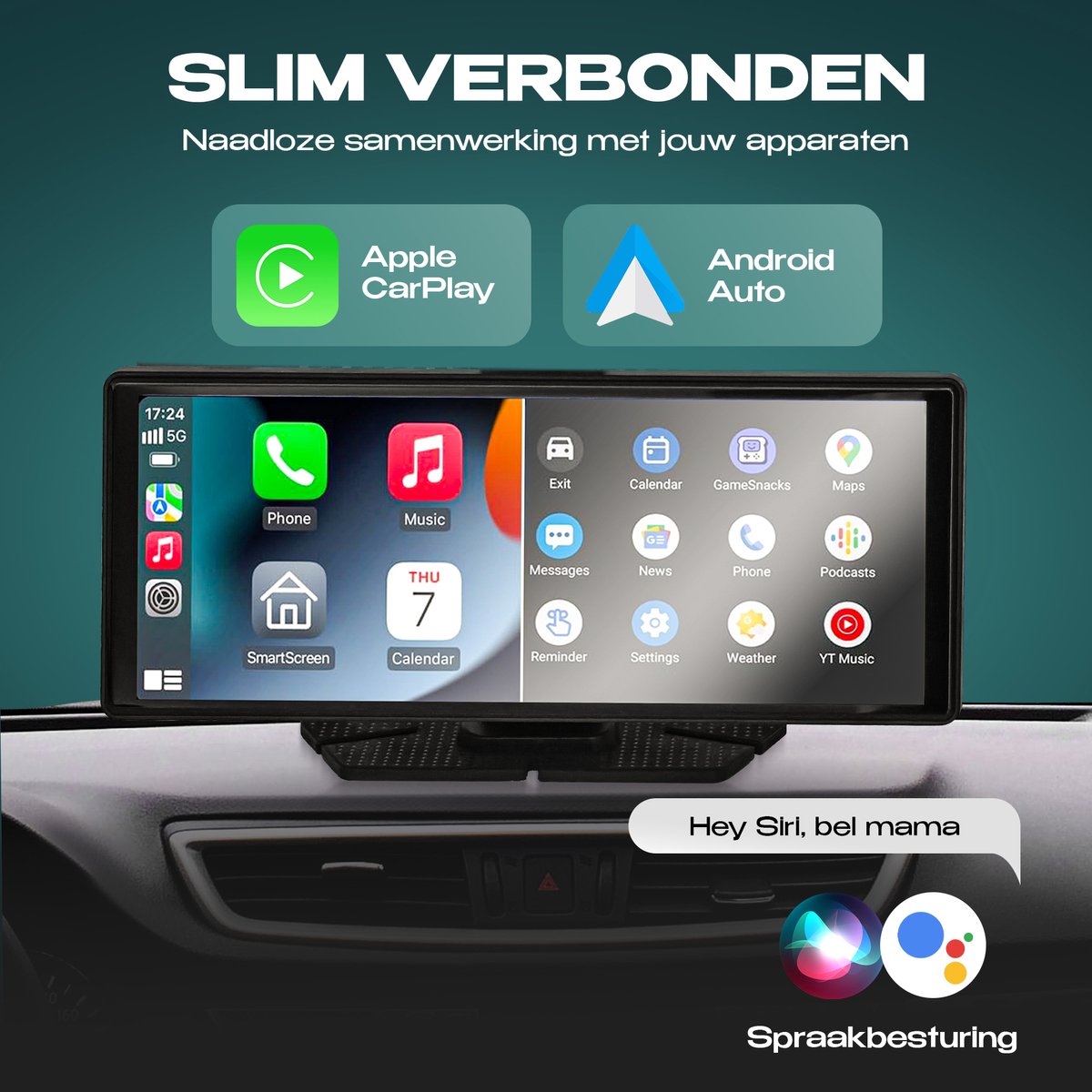 Zeker. Via Siri spraakbediening kun je handsfree bellen, berichten versturen of ontvangen en navigeren. Dat maakt het gebruik veiliger en voorkomt afleiding tijdens het rijden.
