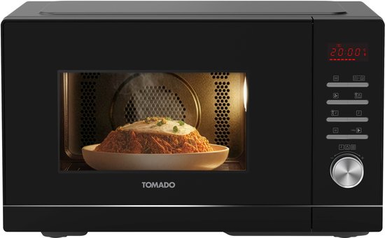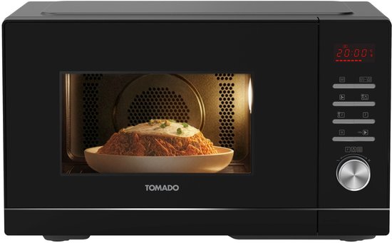 De Tomado TMC2302B is een combimagnetron die zich richt op overzicht en dagelijkse eenvoud. Met 23 liter is hij compact, maar dankzij het draaiplateau van 28,8 cm kun je alsnog met normale borden en schalen uit de voeten. Je krijgt 5 magnetronstanden, 4 combinatiestanden en 10 automatische kookprogramma’s. Daarmee is het een model dat je snel onder de knie hebt, ook als je niet elke week met ovenstanden experimenteert.