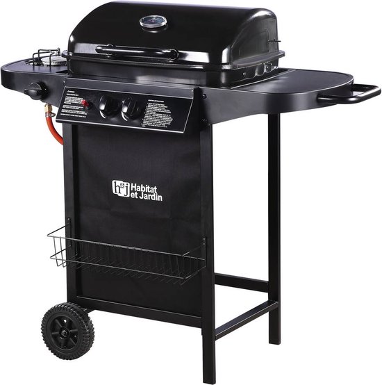 De Grill Gas BBQ Barbecue is een eenvoudig model dat vooral aantrekkelijk is voor wie zonder veel voorbereiding wil beginnen. Je krijgt twee afzonderlijk instelbare RVS-branders, een deksel met geïntegreerde thermometer, twee zijplanken en een warmhoudruimte. Het fijne is dat de aansluitslang en het reduceerventiel al zijn inbegrepen. Dat scheelt extra uitzoekwerk en maakt deze barbecue laagdrempelig voor mensen die voor het eerst een gasbarbecue kopen. Ook de piëzo-ontsteking helpt daarbij, omdat je snel en betrouwbaar kunt starten.