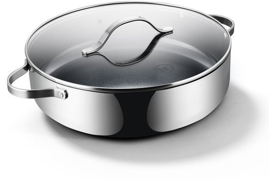 Deze hapjespan is geschikt voor alle warmtebronnen, inclusief inductie, en mag bovendien in de oven. Dat maakt hem interessant voor gerechten die je eerst op het vuur opbouwt en daarna rustig laat doorgaren. De pan is vaatwasserbestendig, wat hem extra aantrekkelijk maakt voor wie na het koken niet nog uitgebreid wil schrobben. Dankzij de koude grepen voelt hij prettig in gebruik. Dit is een flinke hapjespan voor mensen die niet klein willen denken in de keuken.