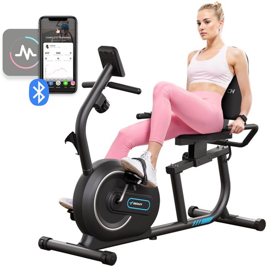 Een sterk punt van deze ligfiets is de koppeling met apps zoals Kinomap, Zwift en iConsole. Daardoor haal je meer beleving uit je training en wordt het makkelijker om gemotiveerd te blijven. Ook de console is prettig ingericht, met een duidelijke grafiekweergave en gegevens als tijd, snelheid, RPM, afstand, watt, calorieën en hartslag. De bediening verloopt via een smart wheel en quick keys in de handgrepen. Met een maximaal belastbaar gewicht van 180 kilo is dit bovendien een bijzonder stevig toestel.