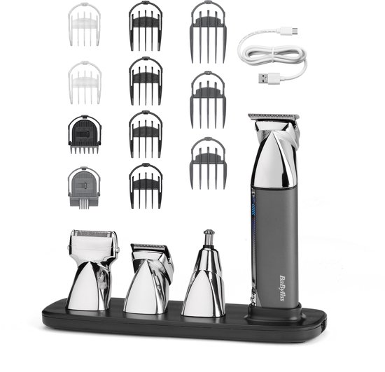 De BaByliss Super-X Metal 15-in-1 Multigroom MT996E is gemaakt voor mensen die veel willen kunnen met één apparaat. De set voelt premium door de metalen behuizing en de MagFix-scheerkoppen die je magnetisch wisselt. Dat wisselen gaat snel en helpt vooral als je in één sessie van baard naar lichaam of van detailwerk naar tondeusewerk gaat. De Japans stalen messen zijn scherp en ontworpen om in één beweging effectief te trimmen, wat prettig is bij dikkere baardgroei of als je niet meerdere keren over dezelfde plek wilt.