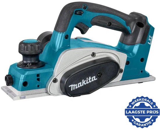 De Makita DKP180Z is een accu-schaafmachine voor wie graag zonder snoer werkt en al binnen het Makita LXT 18V-platform zit. Dit model wordt geleverd als losse body, dus zonder accu en oplader. Voor bestaande Makita-gebruikers is dat juist handig, omdat je een accu kunt delen met ander gereedschap. De machine heeft een schaafbreedte van 82 mm, een maximale schaafdiepte van 2 mm en een sponningdiepte van 9 mm. Daarmee is hij breed inzetbaar voor afwerkwerk, aanpassingen op locatie en lichtere tot middelzware houtklussen.