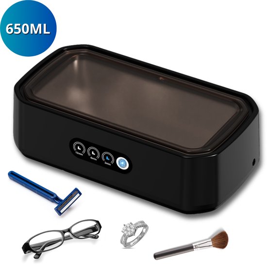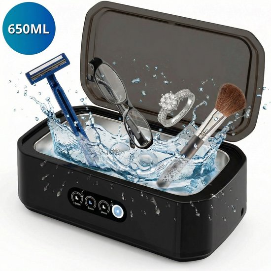 De Zeri Ultrasoon Reiniger is een no-nonsense apparaat dat je kiest als je vooral eenvoud wilt. Geen ingewikkelde menu’s, maar duidelijke timerstanden van 3, 6 of 12 minuten. Dat is prettig als je niet wil nadenken over instellingen, maar wel resultaat wil zien. Met een inhoud van 650 ml kun je meerdere items tegelijk reinigen, zoals brillen, scheermesjes, sleutels en sieraden.