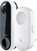 Deze Arlo Draadloze Video Deurbel Wit en Arlo Chime set bestaat uit een slimme deurbel met een camera waarmee je de voordeur in de gaten kunt houden en een deurbelgong. Als iemand aanbelt, begint de deurbel onmiddellijk een videogesprek met je telefoon. Je kunt de deurbel ook luid en duidelijk horen op het bijgeleverde klokkenspel. Tegelijk ontvang je meldingen wanneer de deurbel beweging detecteert in de activiteitszones die je instelt. De deurbel werkt op batterijen, dus je kunt hem overal plaatsen en hoeft geen kabels te laten lopen. Dit maakt de installatie gemakkelijker dan een bedraad model. Je kunt met bezoekers praten via de app, maar je kunt ook standaard spraakberichten instellen. Deze deurbel heeft een ingebouwde sirene om ongenode gasten af te schrikken. Je hebt een cloud abonnement nodig om beelden te bekijken. Dit abonnement is de eerste drie maanden gratis.