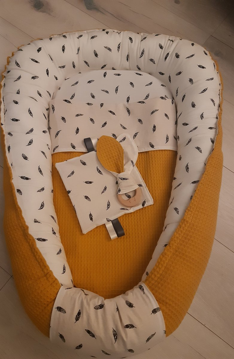 Babynestje okergeel/ veertjes incl dekentje