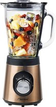 De Bestron ABL500CO blender met glazen kan is een betrouwbaar keukenapparaat voor het bereiden van smoothies, aardappelpuree, milkshakes, soepen of sauzen. Het hakt, pureert en mengt met gemak alle gewenste ingrediënten. Deze stijlvolle standmixer in koperen uitvoering is voorzien van een glazen kan met een inhoud van 1,5 L. De blender heeft een bediening met 2 snelheidsstanden en een extra pulsfunctie die perfect is om snel babyvoeding te bereiden. De antislipbodem van deze blender maakt hem veilig in gebruik. Het is ook gemakkelijk schoon te maken. Met dit apparaat kun je jezelf veel tijd besparen in de keuken!