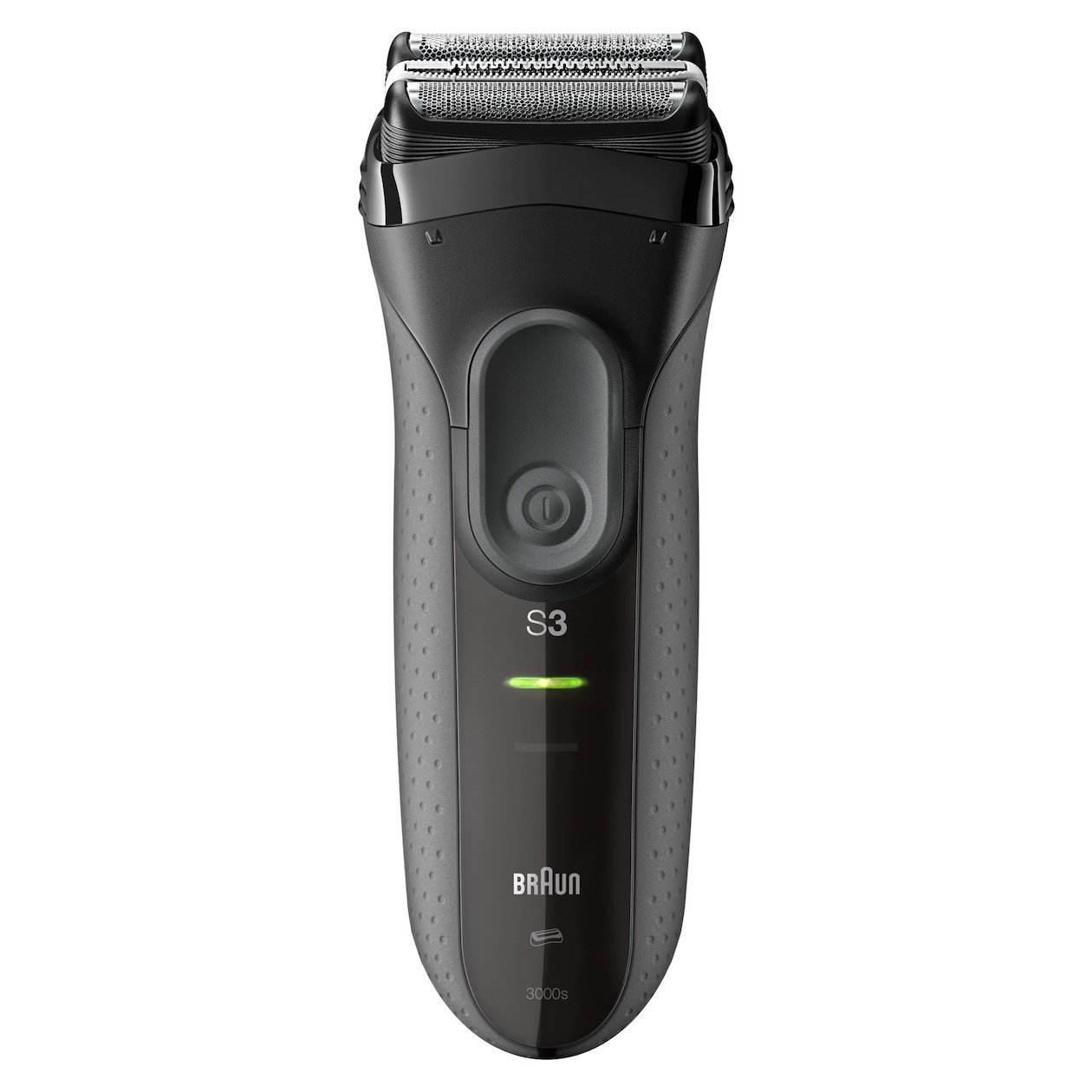 MicroComb technologie. Vangt meer haar op en voert het sneller naar de trimmerelementen voor een snellere scheerbeurt. * Twee rijen fijne groeven op gelijke afstand omringen de onafhankelijk bewegende middentrimmer. Dit vangt bij elke haal meer haren op en voert ze sneller naar de scheerelementen, voor een snellere scheerbeurt. Het verschil met andere scheerapparaten is merkbaar, vooral bij een duurtest op 3-daagse baarden. *Vergeleken met vorige Series 3 modellen. Getest op 3-daagse baarden. 3-traps scheersysteem De dubbele folie en een geïntegreerde middentrimmer scheren progressief dichter. Samen korten ze zowel lang als kort haar in één beweging in - zelfs moeilijke 3-daagse baarden. 2x SensoFoil Zorgt voor een nog gladder en dichter scheerresultaat en voelt zacht aan op de huid. Middelste trimmer Knipt met gemak langere en probleemharen. Triple Action Free Float System Drie onafhankelijk bewegende schaarelementen passen zich aan elke gezichtscontour aan voor een gladde scheerervaring. Eenvoudige bediening Het ergonomische handvat met het beroemde stippenpatroon van rubber maakt een veilige bediening mogelijk, zelfs in natte badkameromstandigheden of wanneer je je scheerapparaat onder stromend water schoonmaakt.