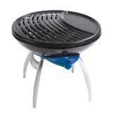 Gemakkelijk verplaatsbaar patroonapparaat dat in één stap kan worden omgevormd van een fornuis met potkruis tot een compacte grill. De grillplaat met antiaanbaklaag is verdeeld in twee oppervlakken en biedt de mogelijkheid tot traditioneel grillen op het rooster en contactgrillen van delicaat voedsel op het gesloten grilloppervlak. Vet en vleessappen druipen in de waterbak, waardoor rook en waakvlammen worden voorkomen. De poten verdwijnen in de grillschaal voor transport, de compacte productgrootte vergemakkelijkt het vervoer.
