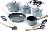 De Mayflower serie van GreenPan is een vernieuwd klassiek ontwerp. De pan heeft een niet-keramische Thermolon anti-aanbaklaag en diamantversterking voor een duurzaam bakoppervlak. Mayflower warmt snel op en heeft een gelijkmatige warmteverdeling. Het werkt op alle kookplaten, inclusief inductie. De pan is van aluminium en mag alleen met de hand worden afgewassen. Deze 10-delige set uit de Mayflower-serie bevat 1 pan, 28 cm, 3 potten, 18 cm, 20 cm, 24 cm, een sauteerpan en 5 bakgerei.