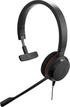 Jabra Headset Evolve 20 Mono MSSecure monaurale headset voor Lync/Skype for Business USB-adapter met gespreksbedieningsknoppen Noise-canceling microfoon Plug-and-play installatie Schuimen oorkussens De Jabra Evolve 20 UC Mono Lync is een headset die ontworpen is om een goede gesprekskwaliteit te bieden voor VoIP-telefonie onder professionele omstandigheden. De zeer gevoelige microfoon onderdrukt achtergrondgeluiden, zodat degene met wie je praat zich gemakkelijk kan concentreren op de inhoud van het gesprek. De speciale oorschelpen van de headset zijn bekleed met zacht schuim, dat hoogfrequent geluid uit de directe omgeving tegengaat en vermindert. Comfortabele oproepbeantwoording en bedieningsfuncties Met zijn schuimrubberen oorkussen biedt de Jabra Evolve 20 UC Mono Lync stijlvol comfort. In de headsetkabel is een bedieningseenheid geïntegreerd voor handige en gemakkelijke toegang tot de meest voorkomende functies, zoals volumeregeling en mute. Je kunt het ook gebruiken om gesprekken te beantwoorden en te beëindigen, waardoor het eenvoudigweg flexibeler is. Plug and play De Jabra Evolve 20 is geoptimaliseerd voor Unified Communications voor gebruik met Microsoft Lync/Skype for Business en wordt onmiddellijk geïnstalleerd met plug and play. Richt je op je kernactiviteiten in plaats van je bezig te houden met compatibiliteitsproblemen!