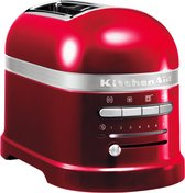 Charmant retro design met de Love Apple 2-delige broodrooster van Kitchen Aid Met de Love Apple 2-delige broodrooster van Kitchen Aid zet je een mooi accent in de keuken. De broodrooster van aluminium ziet er stoer en onweerstaanbaar uit in zijn zuurstokrood. Functionele highlights als de LED-timer, 4-toasterfunctie voor bagel, ontdooien, sandwich en toast, de sensorautomaat met warmhoudfunctie, 7 bruiningsniveaus en de meegeleverde broodtang beloven een gevarieerd ontbijt. Het apparaat meet L/W/H ca. 18 x 34,8 x 22,6 cm en heeft een vermogen van 1250W bij 220-240V en een frequentie van 50/60 Hz. Verleid je geliefden met de Love Apple 2-delige broodrooster van Kitchen Aid!