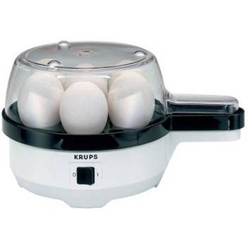 Krups F 233-70 Eierkoker wit Heb je altijd een goed ontbijt in het weekend? Dan kun je natuurlijk niet zonder een zelfgekookt eitje. Met de Krups F 233/70 eierkoker kun je tot 7 eieren tegelijk bereiden, perfect voor het ontbijt. Het apparaat kookt de eieren precies zoals jij ze lekker vindt. Met de maatbeker, die ook een geïntegreerde beker heeft, kun je de exacte stevigheid van de eieren bepalen. Doe de eieren in de eierkoker, selecteer de gewenste stevigheid met de hoeveelheid water en na een paar minuten heb je het gewenste resultaat. Als het kookproces voltooid is, word je geïnformeerd door een zoemersignaal op de eierkoker. De Krups F 233/70 is de perfecte eierkoker voor huishoudens met meerdere personen. Hij heeft een maximale laadcapaciteit van zeven eieren, hoewel er ook minder eieren gekookt kunnen worden. Een praktische kabelopwikkeling op de bodem van het fornuis zorgt er ook voor dat de stroomkabel niet in de weg ligt.