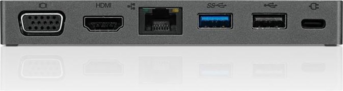 Interfaces | 1 x Beeldscherm / Video - VGA - 15-pins HD D-Sub (HD-15) 1 x Netwerk - 10Base-T/100Base-TX/1000Base-T - RJ-45 1 x Audio / Video - HDMI - 19-pins HDMI Type A 1 x USB 3.1 Gen 1 1 x USB-C (voedingsaansluiting) 1 x USB. |