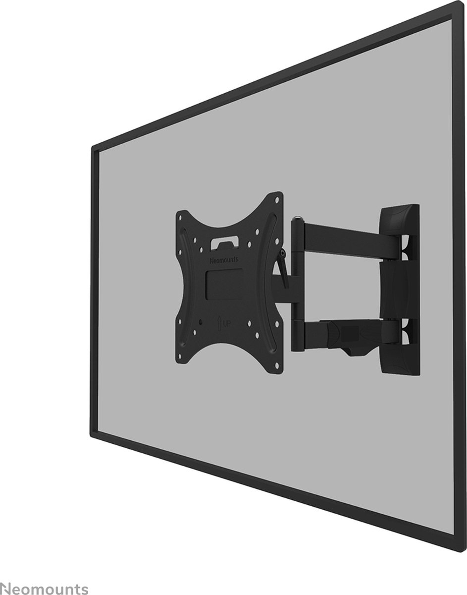 De Neomounts by Newstar WL40-550BL12 is een volledig beweegbare muurbeugel voor flatscreens tot 55" en een maximaal draagvermogen van 35 kg. Met de veelzijdige kantel- (14°) en zwenktechnologie (40°) kun je de optimale kijkhoek instellen. De bevestiging kan worden genivelleerd voor een perfecte installatie. De WL40-550BL12 heeft een dieptebereik van 4,5-42 cm en is geschikt voor schermen met VESA gatenpatronen van 100x100 tot 200x200 mm. De steun heeft een ingenieus easy-release systeem waarmee je de TV in een handomdraai kunt bevestigen. De houder is voorzien van een kabelbeheersysteem om losse kabels aan de achterkant van het scherm vast te zetten.