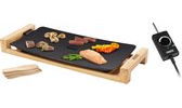 De Princess Table Chef Pure Black 50 x 25 cm is een echte blikvanger op de eettafel dankzij het hoogwaardige bamboeframe. Daardoor ziet het er niet alleen luxe uit, maar is het ook heel stevig en duurzaam. Door het hoge vermogen van 2200 watt wordt de plaat snel opgewarmd. De grillplaat heeft een anti-aanbaklaag. Je kiest uit drie temperatuurniveaus. Gebruik de hogere stand voor vlees, de lagere voor groenten. De robuuste antiaanbaklaag zorgt ervoor dat niets aanbrandt. Goed gevoed? Reinig de houten spatels en de bakplaat in de vaatwasser.