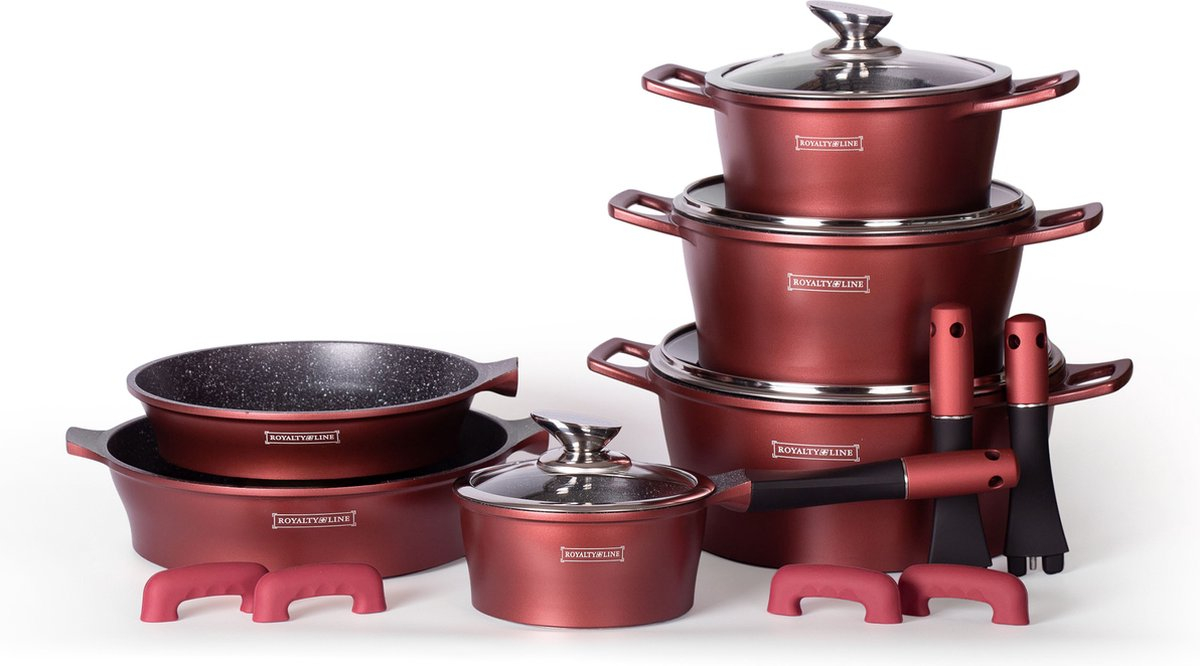 Vergelijk prijzen van € 119 tot € 148.75 van 2 winkels. De laagste prijs voor de Royalty Line ES1014 Inductie Pannenset - 14-Delige Pannenset Met Marmeren Coating - Met Afneembare Handvaten - Oven-Ready - PFAS-Vrij - Voor Alle Warmtebronnen - Antiaanbaklaag - Met Glazen Deksels - Burgundy vind je bij Bol.com.