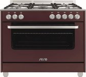 SARO Design gas fornuis - Bordeaux rood - 5 pits - wok - elektrische o...