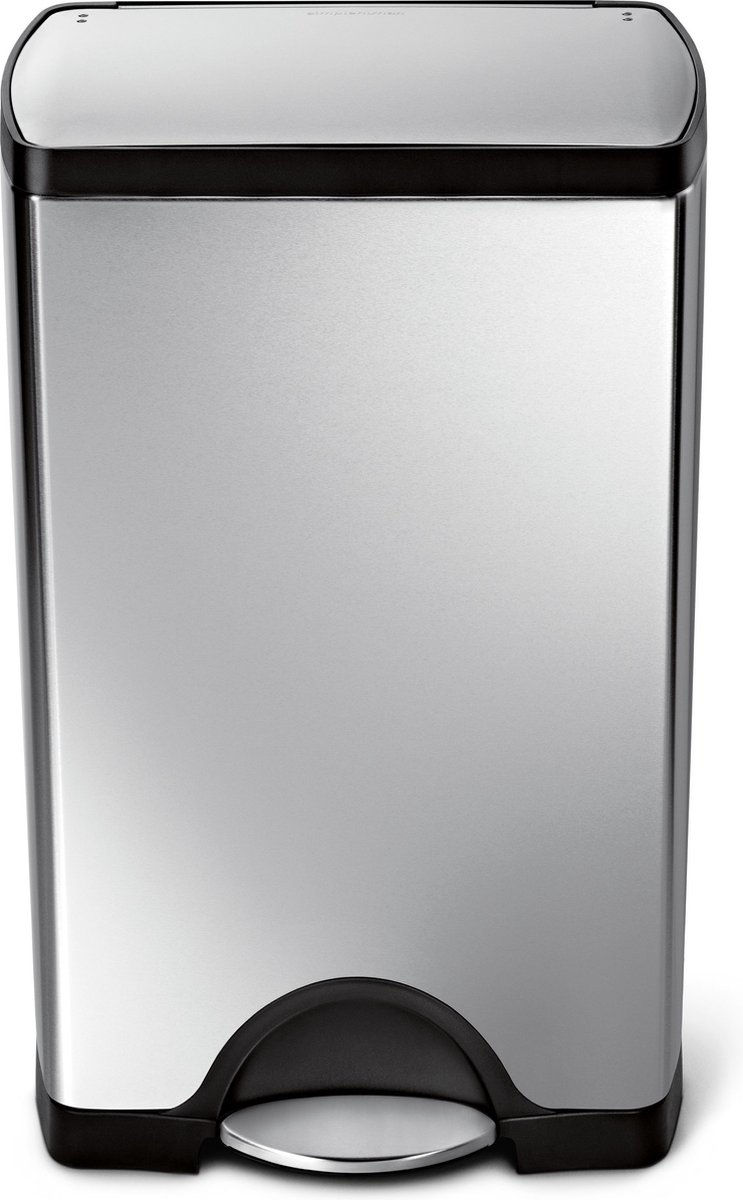 Pedaalemmer Simplehuman rechthoekig 38 L roestvrij staal mat perfect voor kleine plaatsen, anti-vingerafdruk De rechthoekige pedaalemmer heeft een binnenste scharnier en een bijzonder ruimtebesparende vorm. Zo kun je de afvalbak direct op de muur zetten zonder dat hij lelijke afdrukken op de muur achterlaat. Het robuuste stalen pedaal is zeer duurzaam en de gepatenteerde deksel shox technologie regelt de beweging van het deksel zodat het langzaam en stil sluit. Verder is de bak vingerafdrukdicht, wat betekent dat het oppervlak vlekken afstoot, zodat het roestvast staal lang glanzend blijft. De bijpassende afvalzak heeft code J en staat onder het artikel in de afdeling verbruiksartikelen. Zo niet -onmiddellijk beschikbaar- is de levertijd 5-10 dagen.