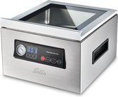 De Solis Chamber Vac Pro heeft een exclusieve uitstraling met zijn behuizing en vacuümkamer van hoogwaardig roestvast staal. De vacuümkamer heeft een inhoud van 7 liter en met behulp van de 4 ingebouwde zuigerpompen kan de Solis Chamber Vac Pro zakken tot 30 cm breed en 33 cm lang verwerken. Na het vacumeren worden de zakken met een dubbele naad verzegeld. Zowel de vacumeer- als de sealtijd zijn gemakkelijk in te stellen op het bedieningspaneel. Het deksel heeft een gedempt sluitingsmechanisme en is voorzien van 10 mm dik veiligheidsglas. Om het apparaat meteen aan de praat te krijgen, wordt de Solis Chamber Vac Pro geleverd met 30 stofzuigerzakken (28 cm x 33 cm).