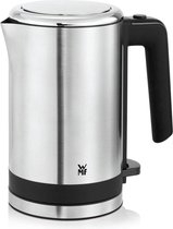 De praktische WMF Küchenminis waterkokerDe WMF Küchenminis waterkoker vult elk keukenformaat aan en geeft ook in het vakantiehuis of op kantoor tot 0,8 liter heet water. Het zwarte, plastic handvat en het deksel dat met een druk op de knop geopend kan worden, zorgen voor veilig hanteren. Het hoogwaardige zilverkleurige Cromargan roestvrijstalen model heeft ook een oververhittingsbeveiliging en een automatische kookstopfunctie. Met een afmeting van B/H/D ca. 14 x 25,5 x 19,5 cm past het fornuis op elke keukenplank. Of het nu voor een eenpersoonkeuken of een logeerkamer is - haal de WMF Küchenminis waterkoker in huis!